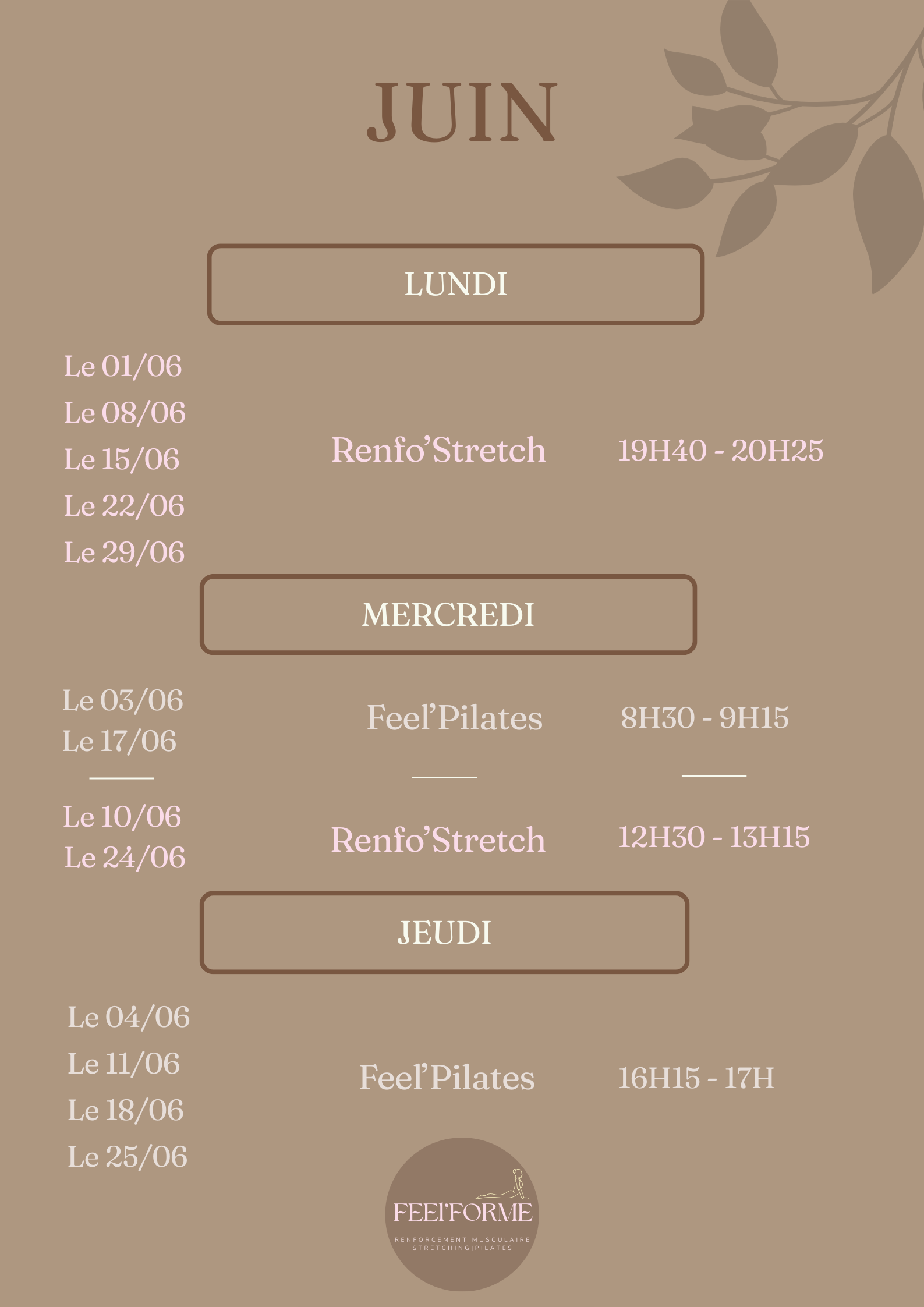 « FEEL’FORME »= cours de renfostretch et feel’pilâtes avec Pauline Dall’agnol
